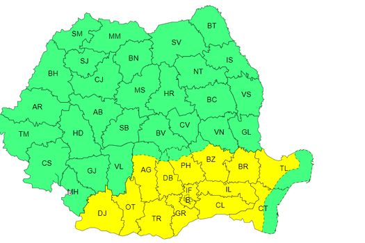 Pe de altă parte, miercuri şi joi în Muntenia, în sudul Olteniei şi în zona continentală a Dobrogei este Cod galben de temperaturi ridicate pentru această dată.