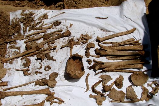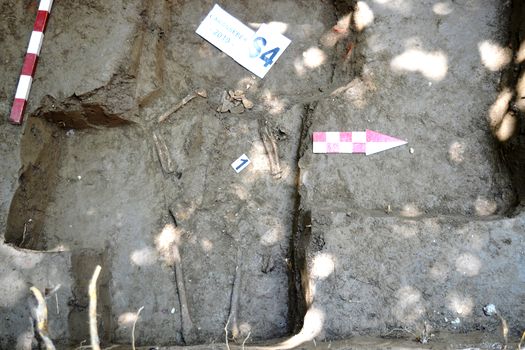 Am săpat, cu ajutorul unui miniescavator închiriat cu ora, în solul uscat şi lutos, tare ca piatra, o adevărată tranşee, din care am scos aproape două tone de pămînt de pe latura de sud a blocului construit în 1975, acolo unde am găsit acum cîteva luni cele patru femure umane. Cînd ne-am apropiat de adîncimea la care s-au aflat osemintele, am continuat să săpăm la şpaclu. Fiecare găleată de pămînt scos cu care se adînceşte şanţul lung de 10 metri şi jumătate şi lat de 2 metri şi jumătate ne apropie de adevăr. Aici am găsit, în două zile, opt schelete, unele incomplete din cauza unor gropi ulterioare, săpate la construcţia blocului. Niciunul dintre morţi nu a fost îngropat în coşciug, niciunul dintre ei nu a fost pus în groapă creştineşte, cu capul spre răsărit, ci a fost aruncaţi aşa cum s-a nimerit. Uneori, unul peste groapa altuia, săpată ceva mai înainte, pe care o intesectează.