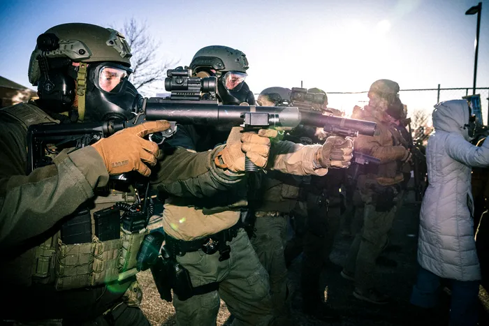 30 January 2026, US, Minneapolis: The tactical unit of the Hennepin County Sheriffs office control the crowd during a rally against federal agents with the Immigration and Customs Enforcement (ICE) agency as they continue their immigration crackdown in Minneapolis. Photo: Dave Decker/ZUMA Press Wire/dpa