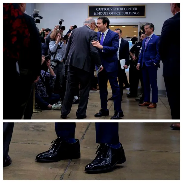 Imaginile difuzate de presa americană arată însă că, în ciuda faptului că șeful diplomației americane, Marco Rubio, poartă disciplinat pantofii cadou de la Donald Trump, încălțămintea este totuși prea mare. Trump i-a greșit numărul de la picior.