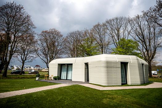 Noua casă constă din 24 de elemente de beton care au fost tipărite strat cu strat la o fabrică din Eindhoven înainte de a fi transportate cu camionul la şantier şi aşezate pe o fundaţie pentru a fi lucrată de firma de construcţii olandeză Van Wijnen. Au fost montate apoi rame de acoperiş şi ferestre şi s-au aplicat finisaje.