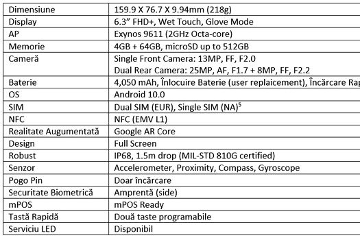 În rest, Galaxy XCover Pro are procesor octa-core, 4 GB memorie RAM şi capacitate de stocare internă de 64 GB, care poate fi extinsă prin intermediul unui card micro-SD.