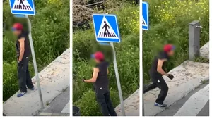 Fotografia cu femeia care a folosit sloganul nazist „Arbeit macht frei” de la Auschwitz ca mesaj de protest faţă de şomaj, virală